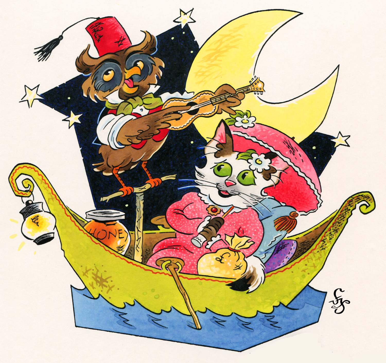 The Owl and the Pussycat. This one goes back to prehistoric times. I have since learned how to draw owl feet.