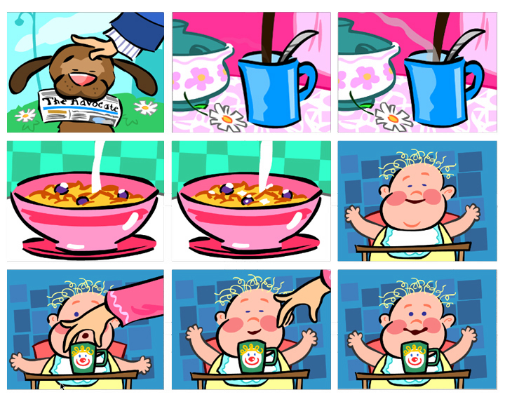 Finally, here are some simple cartoon illustrations intended for use as clip art—though please don't borrow them from this website: Each contains an invisible application which, when introduced into your computer, will cause your hard drive to be reformatted to that of a Commodore 64, circa 1983. Why, you won't even be able to play Pac-Man.